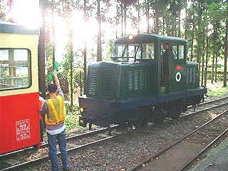 ホハフに連結されようとするDC121。 連結は自動ではなく、手でピンをさして止める 方式のため、慎重に行います。 |