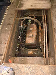 エンジンの点検は床板を開けて行います。 このエンジンが息を吹き返したとは・・・ |