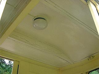 ホハフ7の天井。 元は木造ダブルルーフの合造車(つまりハニ)。 右側は荷物室だったので仕切が残っています。 |