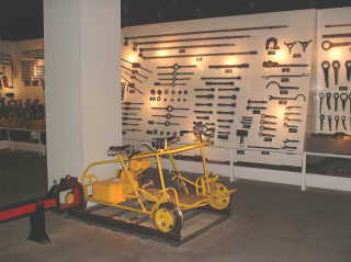 軌道自転車(ここのはエンジン付き)と工具や予備パーツ。