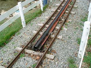 「ベガ」駅を発車してすぐにあるラック区間。 アプト式というよりリッゲンバッハ式に近い感じ。 最初の頃は建築現場のように足場を組んだ 区間も存在していたようです。 |