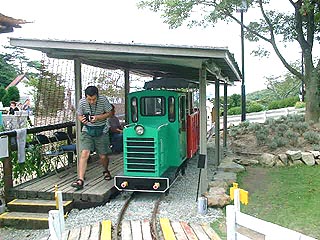 「ベガ」駅にて。 こんなに小さい列車。 ホーム全体に屋根があり、そのまま車庫になりそうな。 英国のロムニー鉄道などと同じ線路幅です。 |