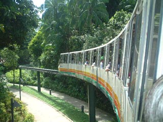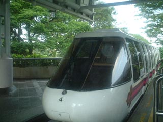 こちらはセントーサ島のモノレールとの事。 結構長い列車なんですね〜 それに対しレールの方はかなり細いのです。 |