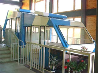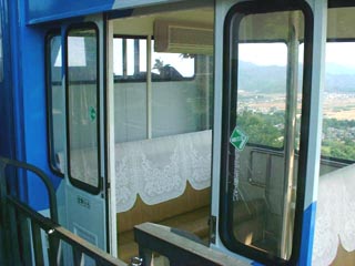 車内にはエアコンも装備。 ソファーのような椅子は山下側に向けて固定です。 |