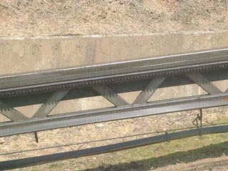向かって奥に見えるのがメインのレール。 この写真では判りにくいですが上下に分かれており、 それぞれをサイドから車両のローラーで挟んでいます。 手前に見えるのが集電用のレールです。 下側からスプリングで集電するようです。 上側に電気が流れていたら危険ですからね。 |