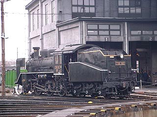こちらはC58の1号機。 全国を飛び回った事もありましたが、今では 静態保存のようです。 この日はお召し装備を施され、除煙板には鳳凰が 輝いていました。 「お召し列車」とは皇族の専用列車で、各地の 機関区では、それぞれ趣向を凝らした装備を 機関車に施したものでした。 |