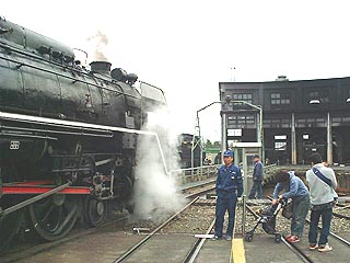 こんなそばで見ることができるのです。 当然足下にはご注意を。 気分は小樽築港機関区? C62は晩年「ニセコ」の牽引で有名でした。 |